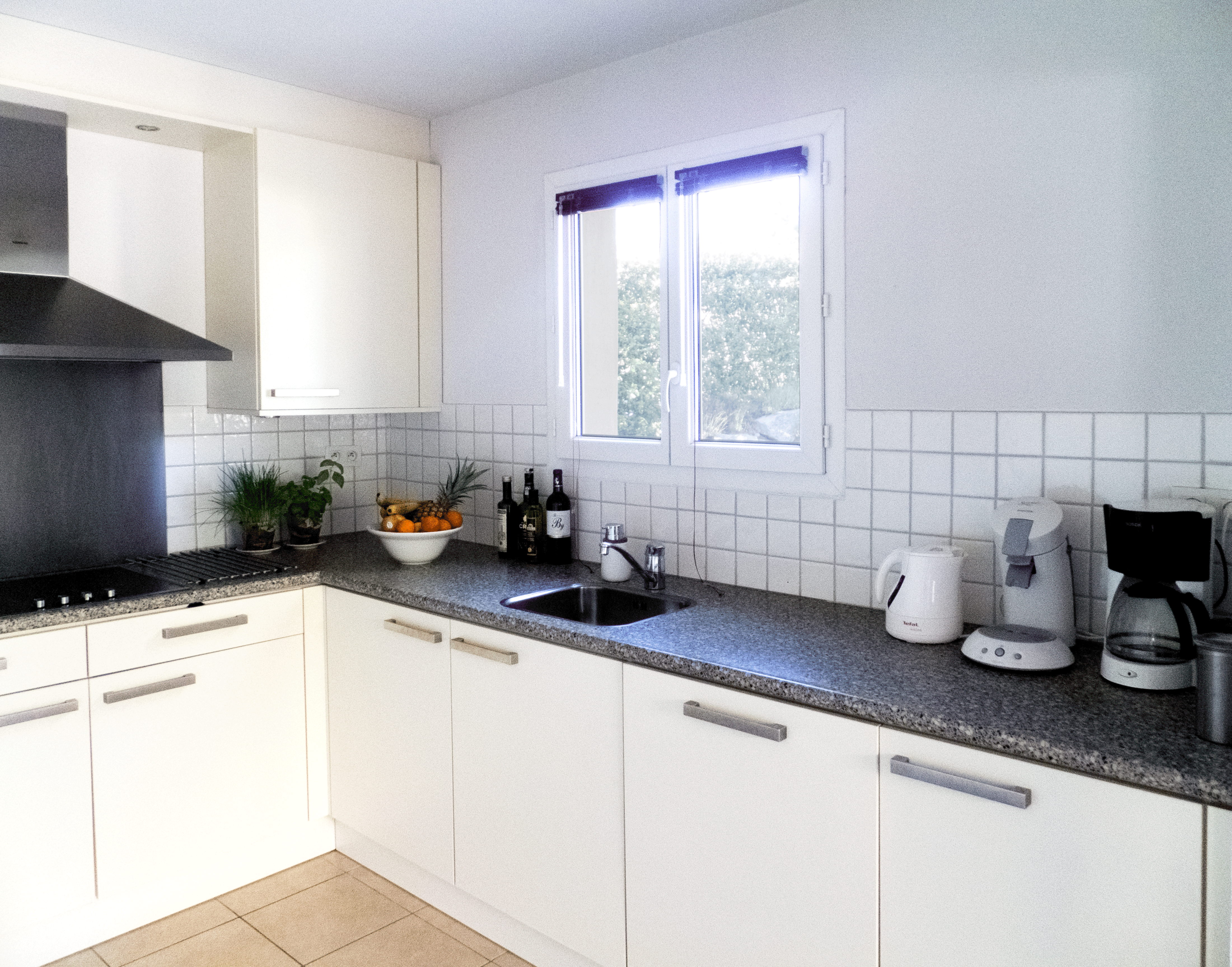 Keuken voorzien van alle moderne gemakken : vaatwasser, koelkast, keramische kookplaat, combi oven / magnetron.