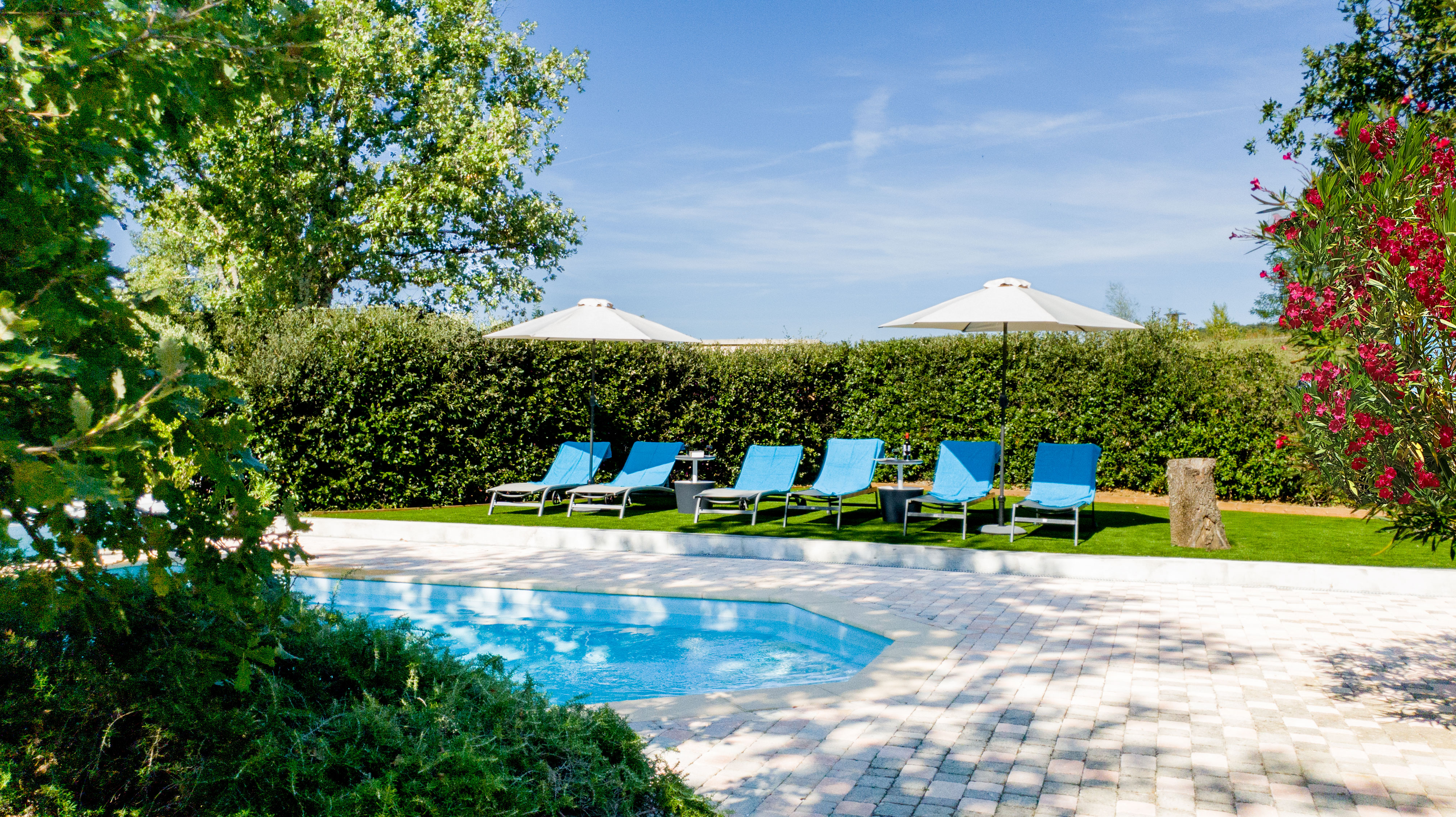 In de zon bij het zwembad.