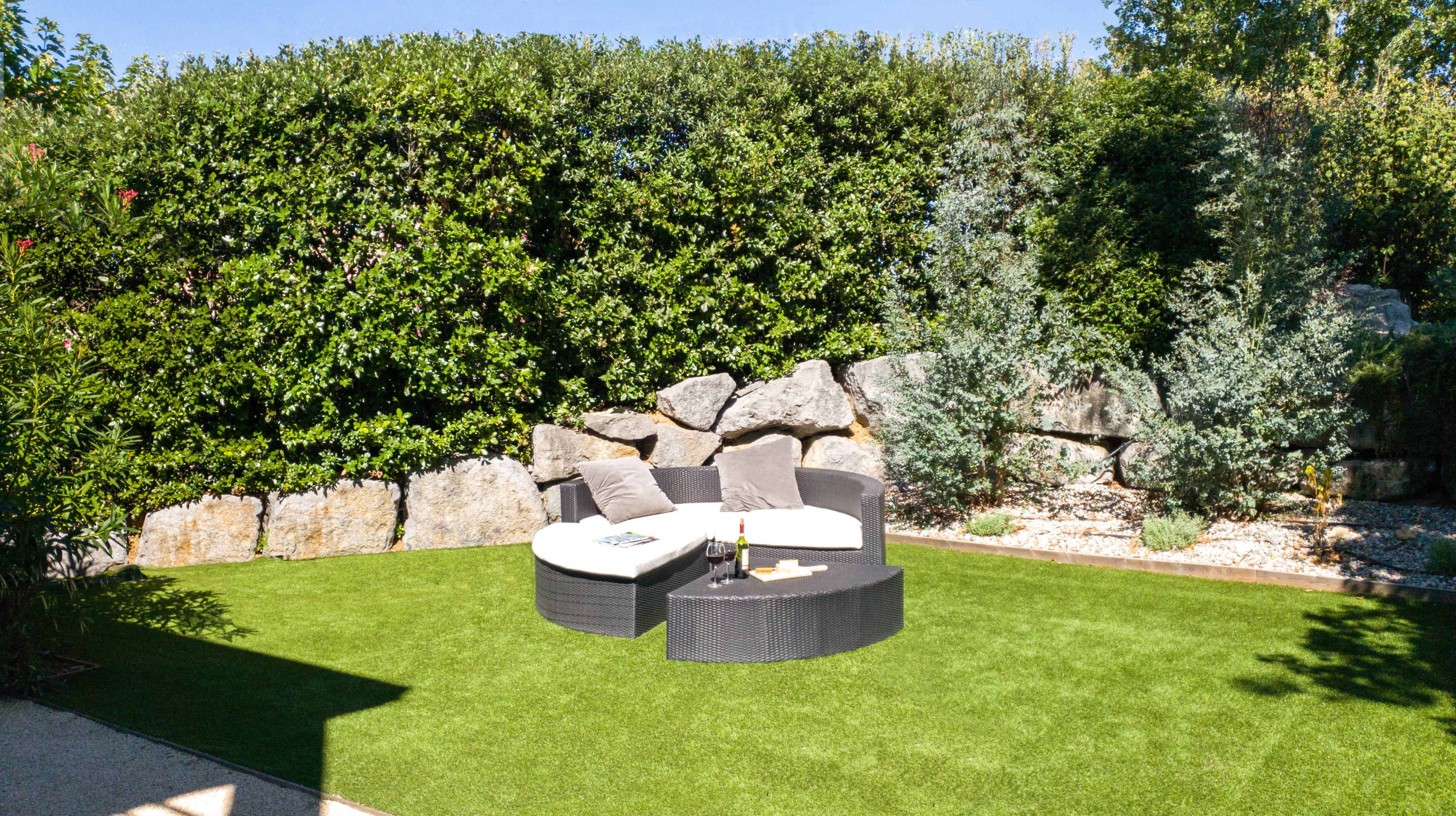 Tuin achter aan het terras.